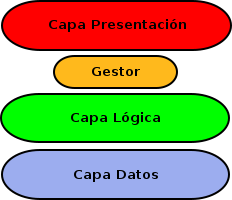El siguiente diagrama sería un ejemplo de la arquitectura de tres capas convencional: