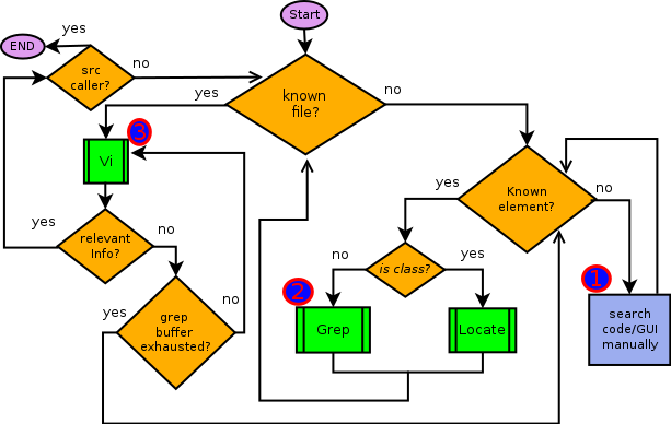 Para la elaboración del estudio se examinaran las funciones que provee la interfaz gráfica y detectar puntos de interés sobre su funcionamiento. Luego se identificará figuras relevantes como el main y el gestor de capas. En conjunto de los resultados obtenidos de los pasos anteriores se hará un seguimiento de llamados hasta llegar alguna línea que sea relevante/apropiada para la inyección de código para generar ráfagas de viento. Ejemplificando la metodología en el siguiente diagrama de flujo: